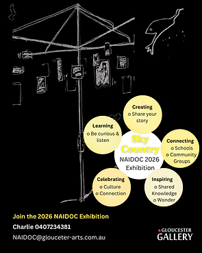Join the NAIDOC exhibition email gallery@gloucester-arts.com.au or 0407234381 for more information and to register your interest
